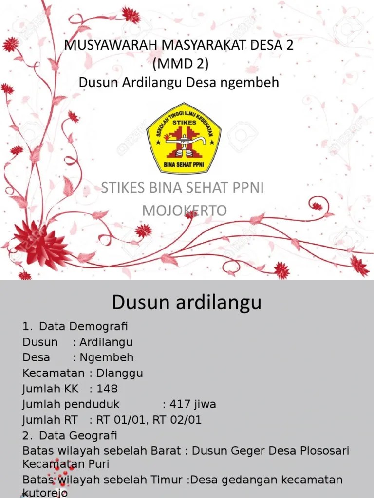 Musyawarah masyarakat desa (mmd) adalah pertemuan perwakilan warga desa beserta tokoh masyarakatnya dan para petugas untuk membahas hasil survei mawas diri (smd) dan merencanakan penanggulangan masalah kesehatan yang diperoleh dari hasil survei mawas diri Categorized under aircraft equipment and supplies, nec. Support input almost populate 3d mode file and support output type is collada (.dae ),wavefront object (.obj ),stereolithography (.stl ),stanford polygon library (.ply ). Download slides (ppt) in french: 2 ftformat iii 2iii.2 sisurvei pdipenyediaan tenaga kjkerja uhupah kjkerja per orang per hihari 3format iii.3.